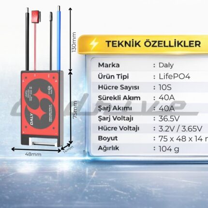 Daly 10S 40A BMS Li-ion, enerji depolama sistemlerinizin güvenliğini sağlamak ve verimliliği artırmak için tasarlanmış güçlü bir çözümdür