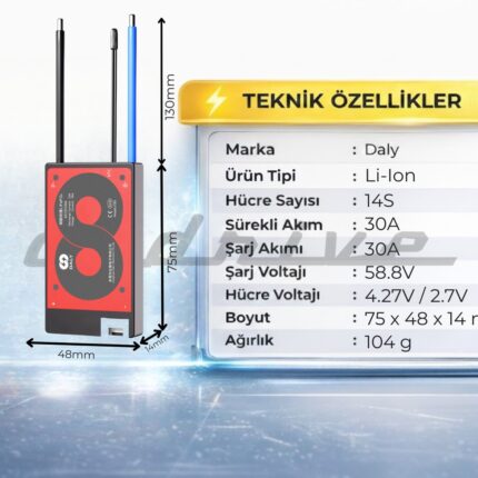 Daly 16S 30A BMS Li-ion, enerji depolama sistemlerinizin güvenliğini sağlamak ve verimliliği artırmak için tasarlanmış güçlü bir çözümdür